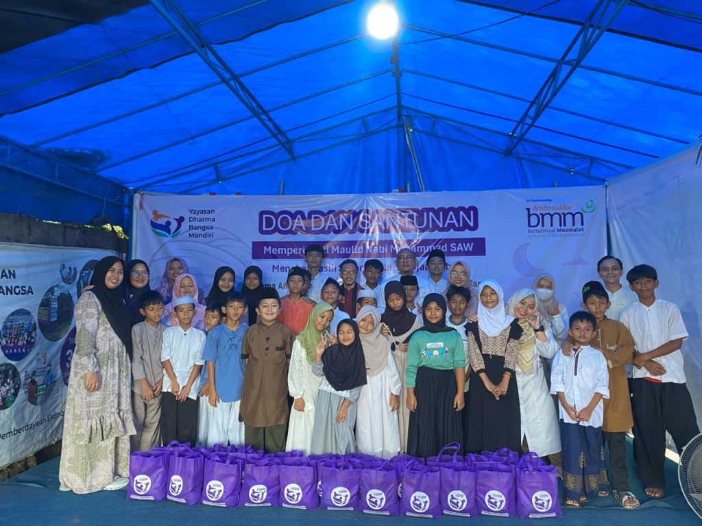 Jakarta, 5 Oktober 2025 — Dalam rangka memperingati Maulid Nabi Muhammad SAW, Yayasan Dharma Bangsa Mandiri (YDBM) menggelar acara bertajuk “Menebar Kasih Sayang Nabi, Belajar Berbagi Bersama Anak-anak Yatim Dhuafa” pada Minggu, 5 Oktober 2025. Kegiatan yang berlangsung di Rumah Mandirikan Bangsa (RMB), Jakarta Selatan, ini dihadiri oleh anak-anak binaan yayasan serta para relawan dan masyarakat sekitar yang turut meramaikan suasana penuh kedamaian dan kasih sayang.